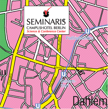 Hotel The conference site is the Seminaris Conference Hotel. The hotel represents a modern life style and aims to suit the demands of visitors to conferences, business meetings, and cultural programs in Berlin and its surroundings. Each of the 186 first-class rooms are air-conditioned, with bath or shower/WC, TV, minibar, large desk, safe, phone, and high-speed internet access. Named the Dahlem Cube, the conference center in the shape of a glass cube with its 2600 m2 of conference space is a masterpiece of modern architecture by Helmut Jahn, Chicago. The hotel is located in the suburb Dahlem at Takustraße 39, 14195 Berlin, and connected to the center of Berlin by subway transportation of about 30 minutes. Details are found under http://www.seminaris.de/berlin. A block of rooms at reduced prices has been reserved at the hotel until April, 30th. Attendees are asked to stay at the conference hotel and make hotel reservations on the conference registration page. For a first impression of the hotel, you will find here a short movie. |